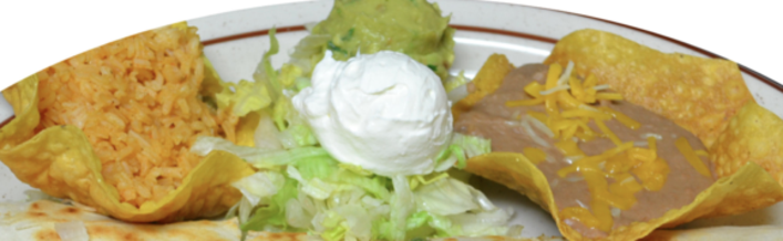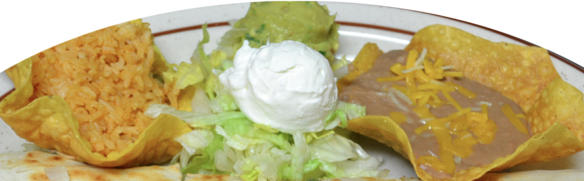 All dishes are served with refried beans and Mexican rice. You may substitute black beans and/or Mexican white rice. Choice of filling in combinations are cheese, ground beef, chicken or shredded beef.